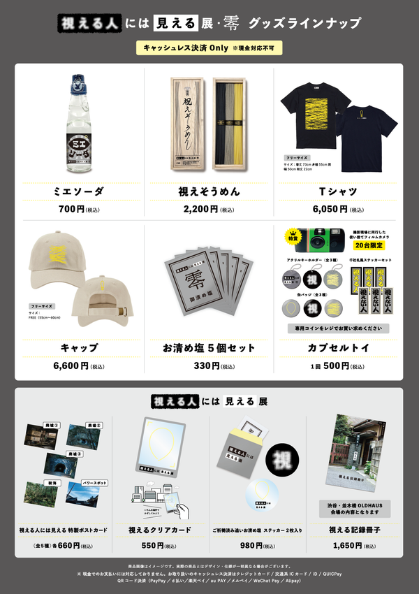 B1フロアにて販売中。渋谷並木橋にて過去開催した『視える人には見える展』のグッズも併せて販売中です。